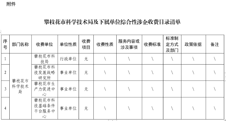 附件:攀枝花市科学技术局及下属单位综合性涉企收费目录清单