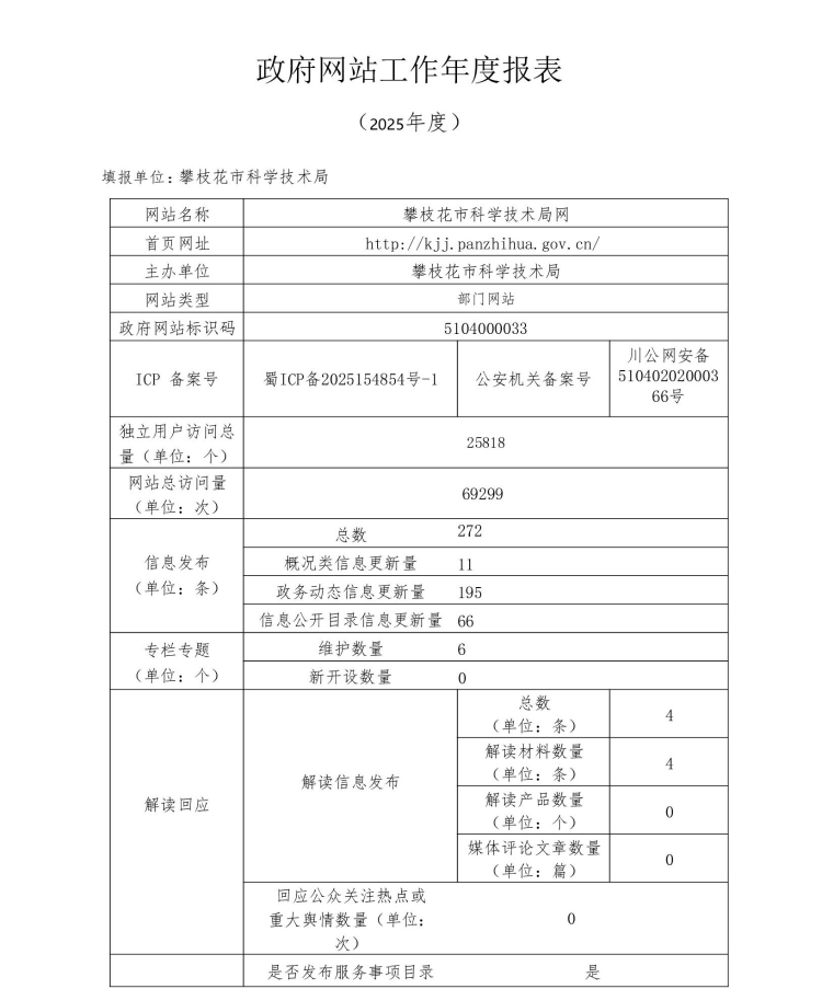 攀枝花市科学技术局网站工作年度报表(2025年度)